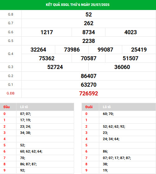 Phân tích XSGL ngày 1/8/2025 là nội dung được nhiều người chơi quan tâm trong ngày thứ Sáu này, khi mà vận may có thể mỉm cười với bất kỳ ai biết nắm bắt thời cơ. Với những góc nhìn chuyên sâu từ các kỳ mở thưởng trước, bài viết hôm nay sẽ giúp bạn hình dung rõ hơn về xu hướng con số tiềm năng, từ đó tự tin hơn khi lựa chọn dãy số may mắn cho riêng mình.